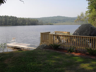 This waterfront cottage is perfect lodging for 2-4 people. Larger groups could rent both cottages to accommodate up to eight. Available March - November it is excellent for beautiful weather, swimming, boating, jet skiing, sun bathing, roasting marshmallows on the fire, cookouts on the grill and relaxation for the entire family. This cottage is located in New Hampton, NH. directly on Lake Pemmiquasett. The lake straddles the towns of New Hampton and Meredith and is 256 acres. The lake has an uninhabited island in the middle called Blueberry Island. New Hampton is a quaint New England town accessible to everything the lakes region has to offer. Weirs Beach is Less than a ten minute drive away. Antique shops and shopping outlets are also in the area. This is the perfect location for a vacation. At night the summer sky is filled with stars and relaxing around the fire with friends and family will create memories that shall never be forgotten. Click here to take a virtual tour of this property! Better than just a place to stay…during the fall the spectacular view of the foliage will leave you in awe. The color of the leaves reflecting on the water is beautiful. This vacation rental is an excellent inexpensive lake front property that cannot be beat. The cottages are immaculately clean; the decor has the vibe of a log cabin, that has been tastefully decorated. While traveling in New Hampshire this is a great location to stay and experience everything New Hampshire lakes region has to offer. The summer rental is excellent for enjoying nature at its best; it’s almost like camping but the cottages offer comfortable accommodations and amenities. Please contact us today for a quote for your next vacation rental. . Click here for driving directions to this location